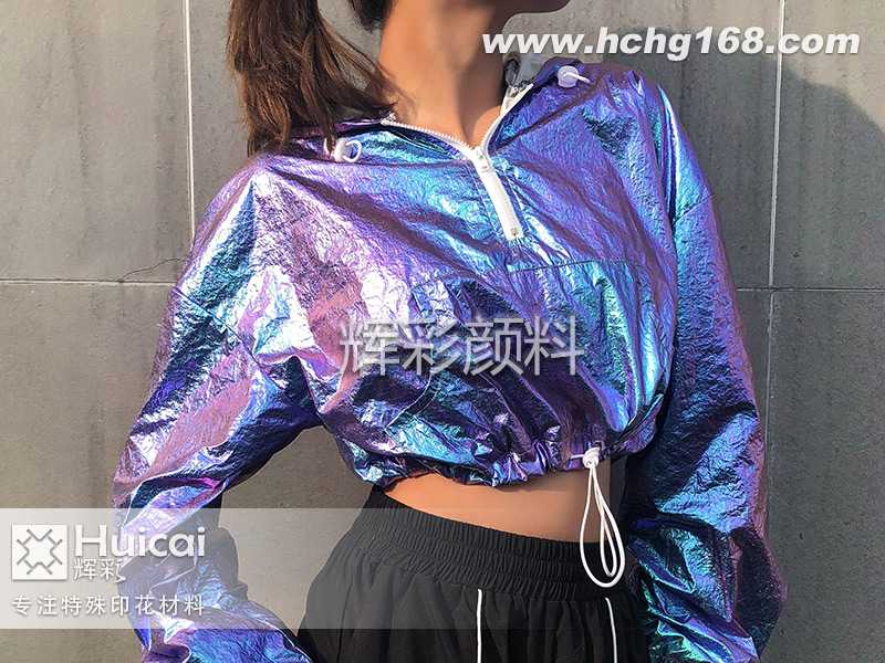 說到讓服裝更加亮眼,必不可少的就是變色龍顏料了,變色龍粉加入印花材料中制成的服裝不管從哪個角度上看都十分亮眼。變色龍粉既可以作為點綴加入印花材料中,還可以直接加入面料中制成鐳射效果,像之前大火的鐳射服就是加入了變色龍粉。
