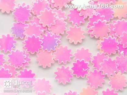 金蔥粉:又名閃光片。包括鋁質金蔥粉,聚酯金蔥粉,幻彩粉,鐳射金蔥粉等。有鋁質,PET,PVC材質。大小規格(size)由1/256(0、1mm)至1/8(3、0mm)。形狀有六角形,四角形,長條針形和不規則形狀,并有多種顏色可供選擇。各種材質金蔥粉可不同程度承受高溫(由80*C,180*C,300*C不等)