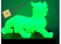 輝彩印花材料已有 夜光粉的顏色有黃綠光,藍綠光,特殊的天藍光,白色光,綠色光,粉紅色光,桃紅色,黃色光,桔紅色,橙色。