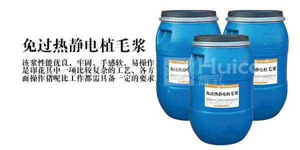 輝彩免過熱靜電植毛漿性能優良牢固好,手感柔軟、易操作,此產品是印花其中一項比較復雜的工藝,各方面操作準備工作都需具備一定的要求。