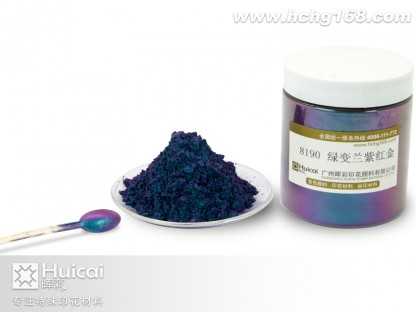 8190綠變蘭紫紅金變色龍粉其變色原理為吸收特定波長之紫外光源,藉由該光源之能量而產(chǎn)生顏色變化(變?yōu)樽仙⒓t色、黃色、天空蘭色),當(dāng)特定波長的紫外光源不在時,即回復(fù)原來的顏色。