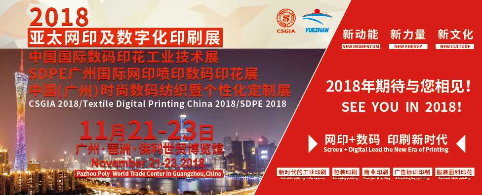 2018年11月21號~23號歷時3天的第32屆中國國際網(wǎng)印及數(shù)字化印刷展在在廣州琶洲保利世貿(mào)博覽館圓滿落幕。廣州輝彩印花材料這次有幸得到邀請前往會場參觀和學(xué)習(xí)交流。在這3天的時間里,我們學(xué)到了很多,下面就由小編帶著大家回顧一下其中有什么亮點吧。
