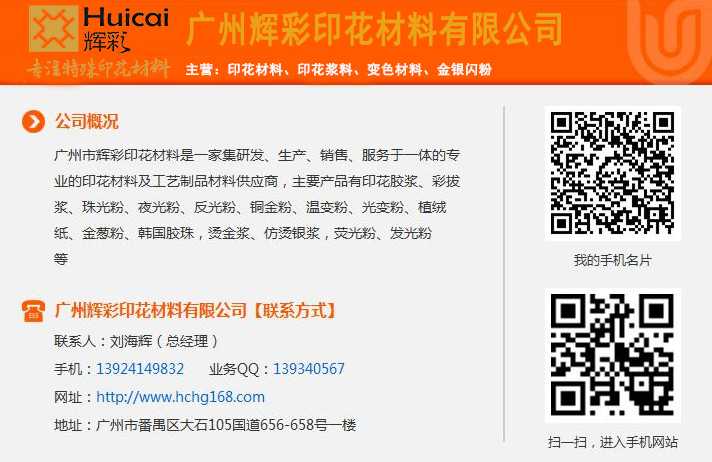 鐳射金蔥粉 /鋁銀粉 /鋁銀漿 /圓形閃光片 /金粉 /金蔥粉 /水性鋁銀漿 /印花金銀粉 /特閃金粉 /珠光粉 /幻彩金蔥粉 /更多+Copyright?2013 Guangzhou Hui Cai Printing Materials Co., Ltd 粵ICP備13072644號