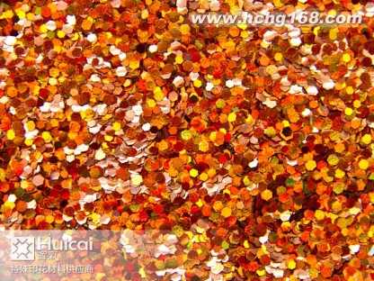 金蔥粉:又名閃光片。包括鋁質金蔥粉,聚酯金蔥粉幻彩粉,鐳射金蔥粉等。有鋁質,PETPVC材質。大小規格(size)由1/25601mm)至1/830mm)。形狀有六角形,四角形,長條針形和不規則形狀,并有多種顏色可供選擇。各種材質金蔥粉可不同程度承受高溫(由80*C180*C300*C不等) 。